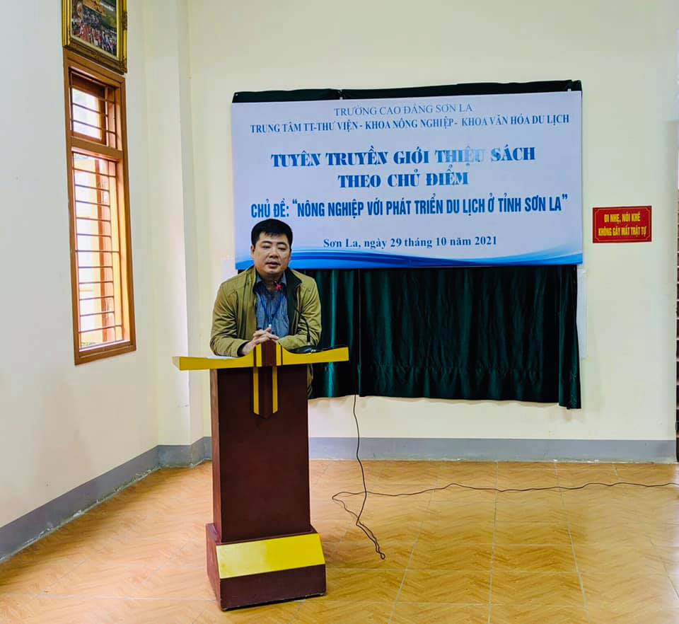 Theo đúng Kế hoạch, sáng ngày 29/10/2021, Trung tâm Thông tin - Thư viện Trường Cao đẳng Sơn La đã phối hợp với Khoa Nông nghiệp và Khoa Văn hóa Du lịch tổ chức buổi tuyên truyền giới thiệu sách theo chủ điểm, chủ đề: “Nông nghiệp với phát triển du lịch ở tỉnh Sơn La”.